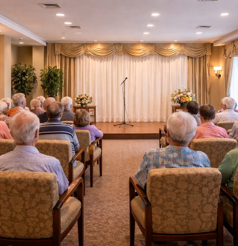 Linda creates fun, interactive musical experiences singing beloved songs from the 50s, 60s, and beyond — encouraging residents to sing along, smile, and relive meaningful moments through music.